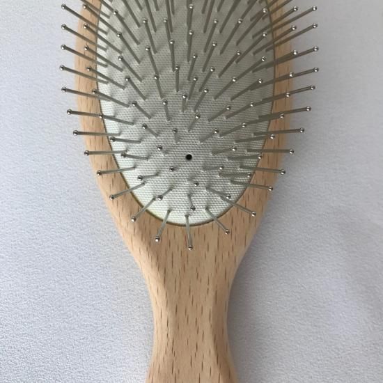 肌あたりのよい丸いスチールピンヘッドが、頭皮に届きますので、髪の多い 方、長い方でもしっかりとブラッシングできます。